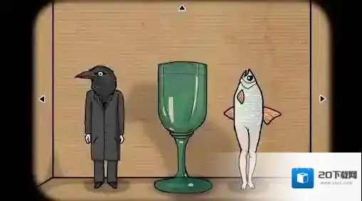6、酒杯视角:酒杯旁的黑蛋变成的乌鸦先生(这应该是乌鸦先生第一次登场),鱼的尾巴变成了双腿(看起来怪恶心的);点开游玩多米诺骨牌得到的(纸),将乌鸦先生和鱼摆成和纸对应的样子;将(雪茄)塞入鱼嘴中,获得成就(熏鱼),用(点燃的火柴)将雪茄点燃;点击中间的酒杯,酒杯中冒出了红色的液体。