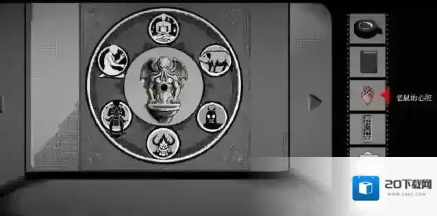 10、然后回到培养皿所在房间,点击培养皿前面的祭坛。左侧放上老鼠心脏,右侧放上人偶,唤醒克苏鲁幼崽。然后将毒药对准喂食口使用,之后培养皿玻璃破碎,游戏结束。