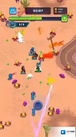 2、进入地图后滑动摇杆可以控制角色移动,角色会自动攻击出现的虫子。