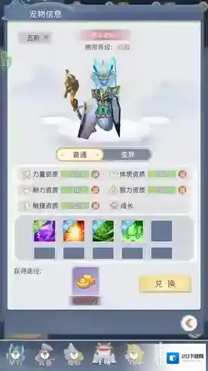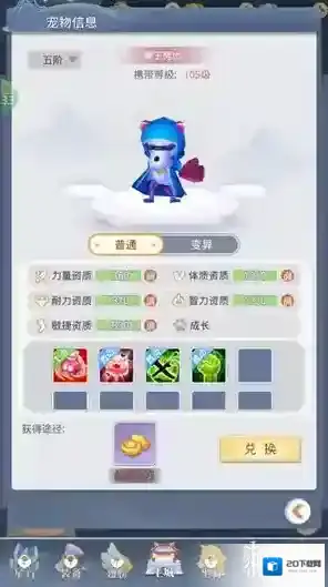 主动技能:群体法攻对3个目标造成100%+宠物等级*3的法术伤害;若目标生命值高于70%,则攻击时50%概率附加10%忽视法防;进入战斗后每200点防御,可增加5点法攻;攻击转化为光系魔法,技能攻击时附带5%的光系伤害,受到暗系攻击时伤害结果增加10%