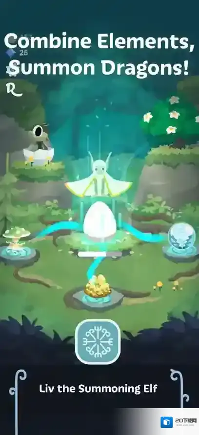 1、召唤巨龙:帮助莉芙调配元素、宝石等材料,召唤形态各异、稀有非凡的龙族来到你的森林。