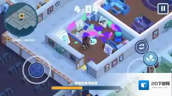 3、正式开始后左边控制角色的移动,右边的按钮可以喷水清理污渍,将所有的污渍全部清理就可以通关。