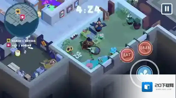 游戏中的机制比较有趣,如果身为狼人的玩家被发现就会吃掉同事。你可以选择小心翼翼躲避其他人类视线来清理垃圾,也可以选择吃掉办公室所有人来清理垃圾,两种方式都可以让你完成任务,选择合适的方法来完成你的目标,不断清理垃圾避免被人类发现。