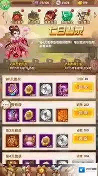 2、七日登入,每日领取海量道具礼包福利。