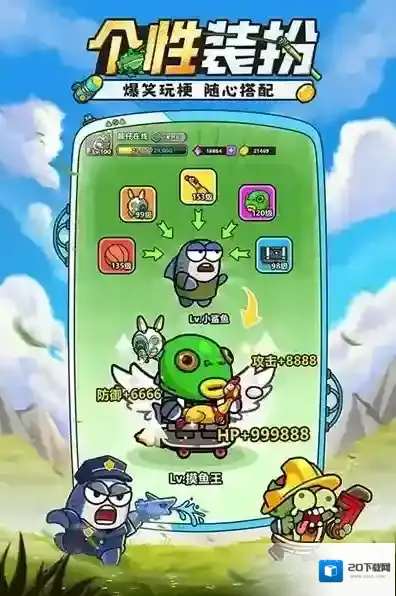 小鱼快跑下载安装是一款非常有趣的放置挂机类游戏,玩家在游戏中可以放置鱼人来消灭海量的僵尸鱼人,并且玩家在挂机打怪的过程中能够收集各种各样的资源以及装备,全方面的强化鱼人实力,从而提高自己的挂机效率,获得更多的强力装备。