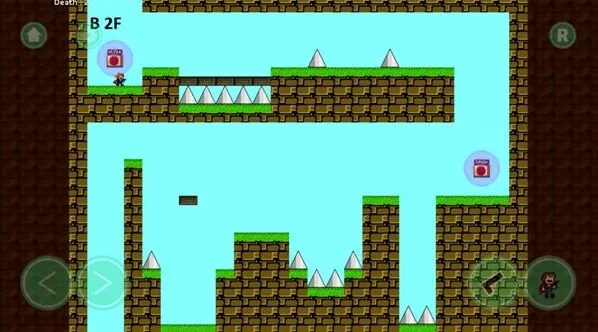 3、通过屏幕左下角的左右箭头按钮操控角色移动,利用右下角的攻击键等操作,躲避场景中的尖刺陷阱前进。