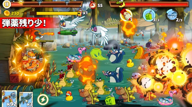 沼泽激战2,英文名叫做Swamp Attack 2,是一款非常独特有趣的塔防类手游。敌人出现的模式类似植物大战僵尸,防御则是通过你来控制主角进行射击,以此来击败不断入侵的敌人,过程中还可以使用炮仗、炸弹等道具来进行大范围的杀伤!除此之外,在你挑战的过程中还会随机的出现小黄鸭,及时的拾取它们,可以获得一些影响不到的收获哦!我们还可以通过局外养成来提升整体的火力,并且还能去解锁新角色以及武器,享受更精彩的塔防乐趣!