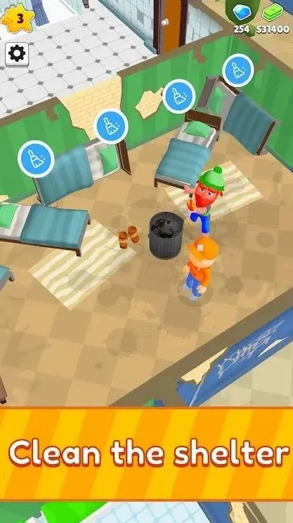 旅社大改造(Flop House)又名《Flop House:无家可归者庇护所》,它是一款以旅店为题材的模拟经营类游戏,你将在旅社大改造中扮演旅社管理者,全流程体验装修、打扫、迎客等内容。旅社大改造采用非常明亮、简约的卡通画风,画面接受度高,接待无家可归者的设定也非常温馨——“安得广厦千万间,大辟天下寒士俱欢颜!”