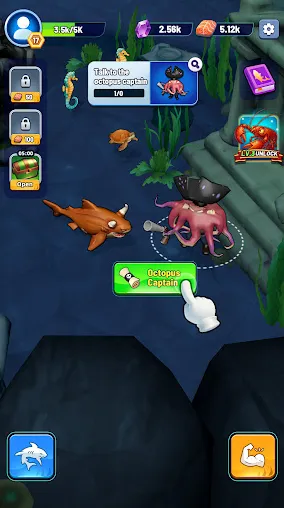 2、超强BOSS:在舞台挑战中遇到传说中的海怪,每个级别都需要不同的策略和更强大的体型才能战胜。