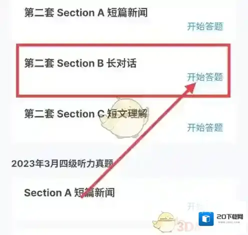 4、在试题列表中选择题目,点击“开始答题”,进行英语听力训练。