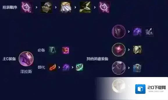 皇子2星的时候很容易死,他至少得放2-3个大才有吃装备收益,最好留2腰带合个狂徒,帽子加的法强能给旗子赋予更多的攻速,法袍可以选做,腰带不够的话建议霞做轻语,霞最好有无尽轻语,第三件随意,洛吃功能装,赵信有机会3就给个偷偷,不能3就不给装备。