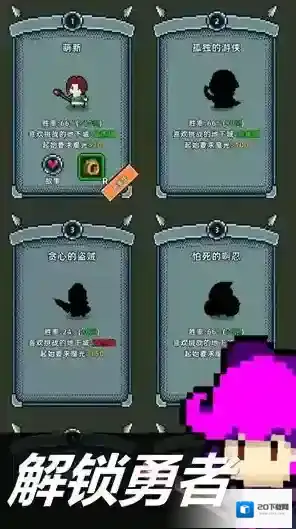 2、英雄收集玩法丰富,20+位勇者各具特色,属性相克系统增加策略深度,装备搭配影响战力,需根据敌人类型调整武器组合,打造专属战斗风格。
