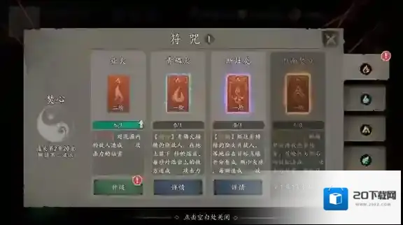 3、在关卡里右下角会自动生成各种属性的符咒让你使用,每次获得的符咒品质都是不同的。