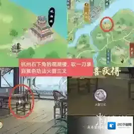 7、姑苏左上角辩明会,柱子旁乱选可获得888铜钱。