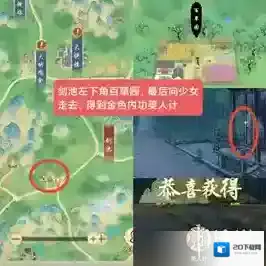 3、剑池左下角百草园,最后走向少女,可获得金色内功美人计。