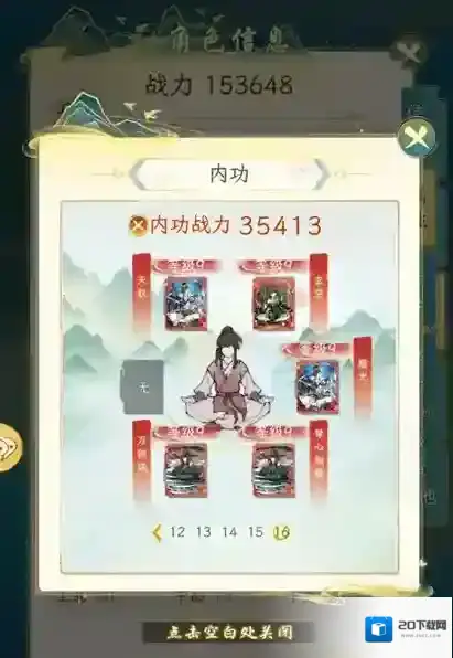 3、进行功法参悟,即升星,快捷参悟的方法为点击左上角头像下方的变强武学提升武学升重。