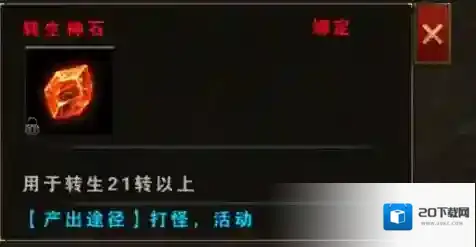 当玩家达到20转后,若要继续提升转生等级,则需要前往第三大陆,进入烈焰秘境兑换转生神石来进行提升。